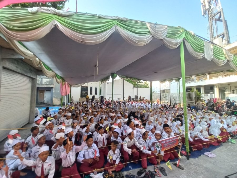 Selain para siswa-siswi, warga sekita sekolah turut hadir menyaksikan perayaan maulid nabi yayasan Al Hijaz.