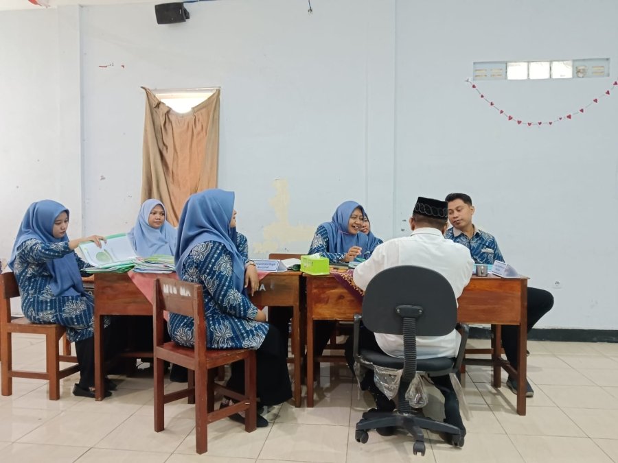 Pada kesempatan kali ini SU’ UD, M.Pd. menilai Komponen A dan B sedangkan UMI KULSUM, M.Pd.menilai Komponen C dan D. Adapun Komponen yang dimaksud adalah: A. Usaha Pengembangan Madrasah, B. Pelaksanaan Tugas Manajerial, C. Pengembangan Kewirausahaan dan D. Supervisi Kepada Guru dan Tenaga Kependidikan. Bapak/ibu guru secara bergantian membantu dan menunjukkan bukti fisik kepada pengawas.