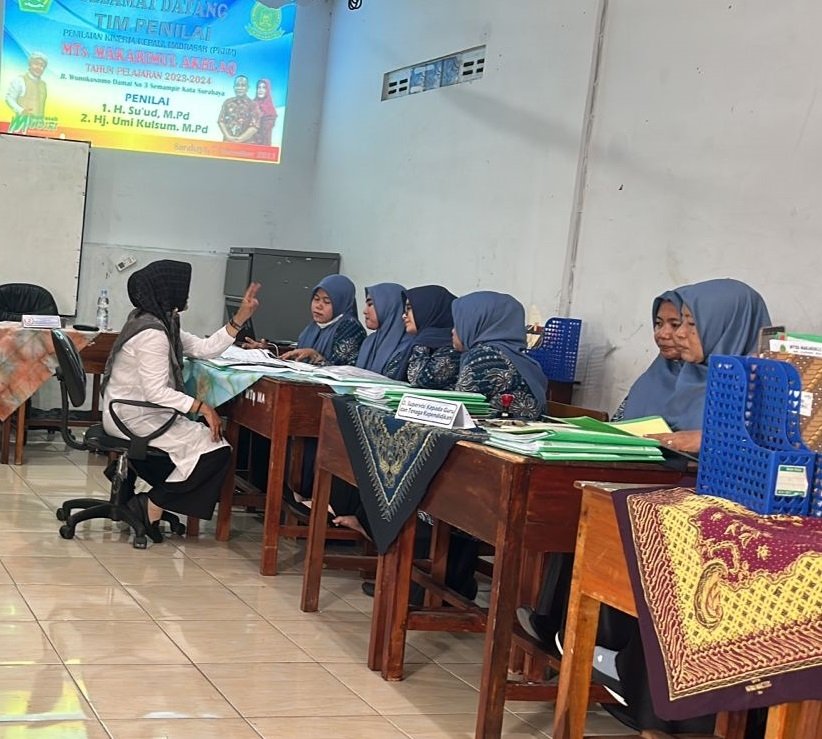 Penilaian Kinerja Kepala Madrasah (PKKM) merupakan proses pengumpulan, pengolahan, analisis, dan interpretasi data yang dikerjakan oleh kepala madrasah pada setiap indikator pemenuhan standar. Kegiatan ini dilakukan dua pengawas Pendidikan Agama Islam Kantor Kementerian Agama Kota Surabaya yaitu SU’ UD, M.Pd. dan UMI KULSUM, M.Pd. yang dimulai pukul 09.30 sampai 12.00 WIB di Ruang Aula MTs Makarimul Akhlaq (07/11).